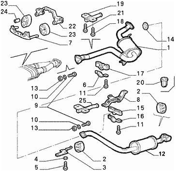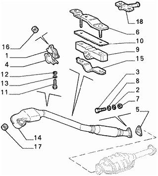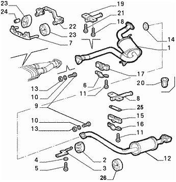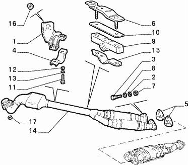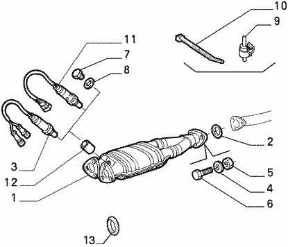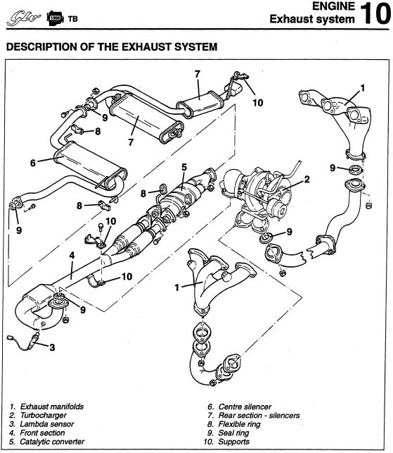 In the beginning of my post I will show one diagram (from manual) of the exhaust system of GTV 2.0 V6 TB for clarity about exhaust parts.